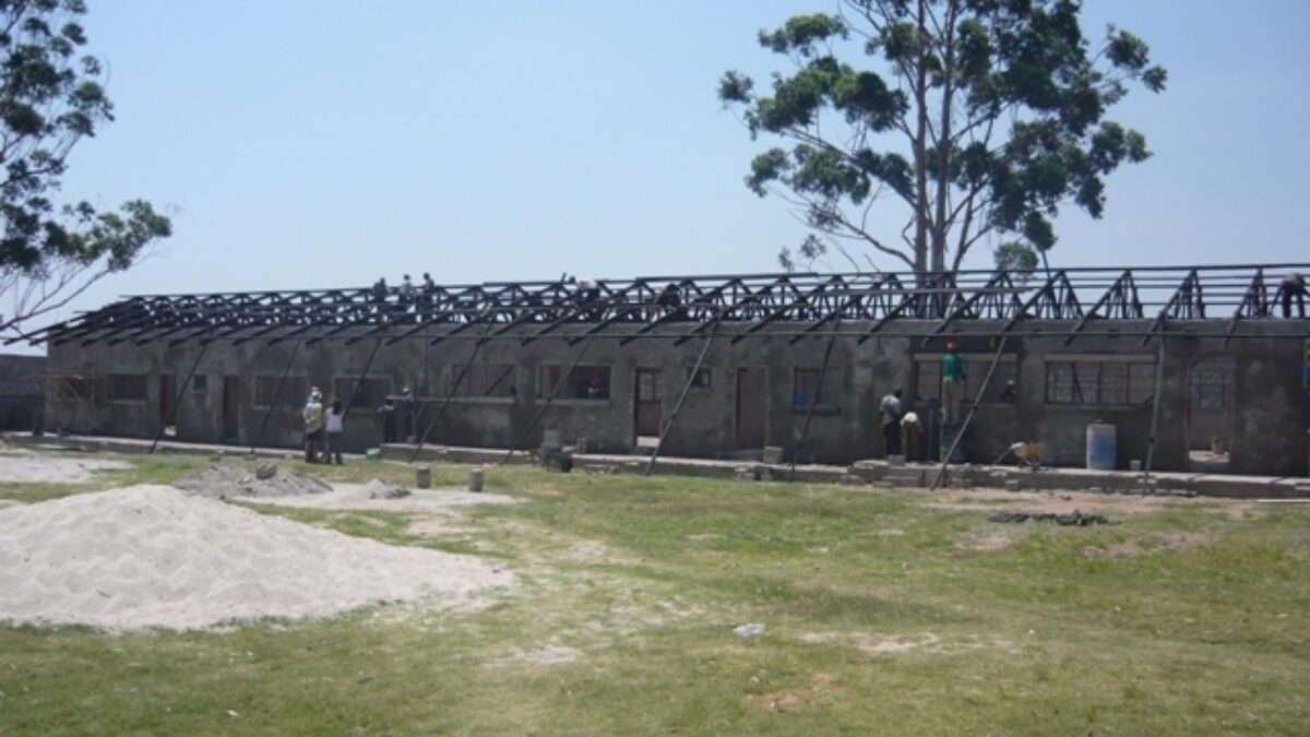 Czas na słów kilka o tym, co dzieje się na placu budowy w Kapiri Mposhi. A dzieje się, dzieje…Szkoła nabiera kształtów każdego dnia. Trasy już na murach, trwa łączenie kratownic łatami drewnianymi. Pracownicy dzielnie znoszą pracę na wysokościach w palącym niemiłosiernie słońcu. Więźba dachowa niebawem będzie gotowa. Ściany wewnętrzne otynkowane, pierwsza warstwa tynku zewnętrznego nałożona. Trwają prace wykończeniowe narożników okien i parapetów. Dziś przyjeżdża elektryk, by kontynuować prace nad instalacją elektryczną. Progres cieszy oczy. Zresztą zobaczcie sami…
