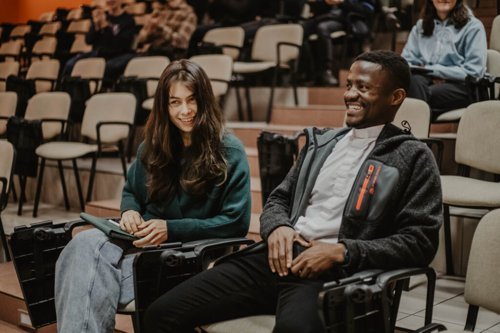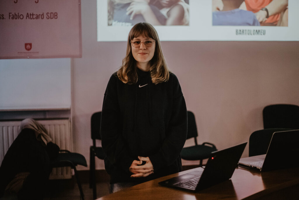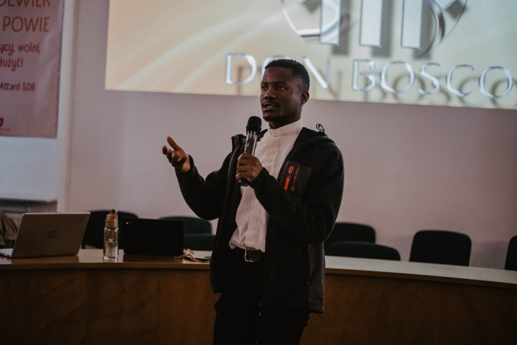 W niedzielę jeszcze bardziej przenieśliśmy się w świat misji, który daje zupełnie inną perspektywę patrzenia na rzeczywistość. Nasi wolontariusze – Wiktor i Filip – zaprezentowali, jak wyglądał ich czas w Zambii – co robili, jak wyglądała ich codzienność; co było dla nich trudne i co ich umacniało. O swoim czasie pobytu na tej samej placówce opowiedziała nam także Emilia – wolontariuszka SOM w Warszawie. Diakon Bwayla Kasonde SDB wprowadził nas w tematykę realizacji ewangelizacji w rzeczywistości misyjnej; przybliżył nam pojęcie ’inkulturacji’ oraz jak głosić Słowo Boże na terenach misyjnych; ks. Jacek Garus SDB – łącząc się z nami online – z placówki salezjańskiej w Afryce, opowiedział nam, jak przedstawia się praca misyjna w Kazembe i jak w tej pracy misjonarze mówią o Panu Bogu.