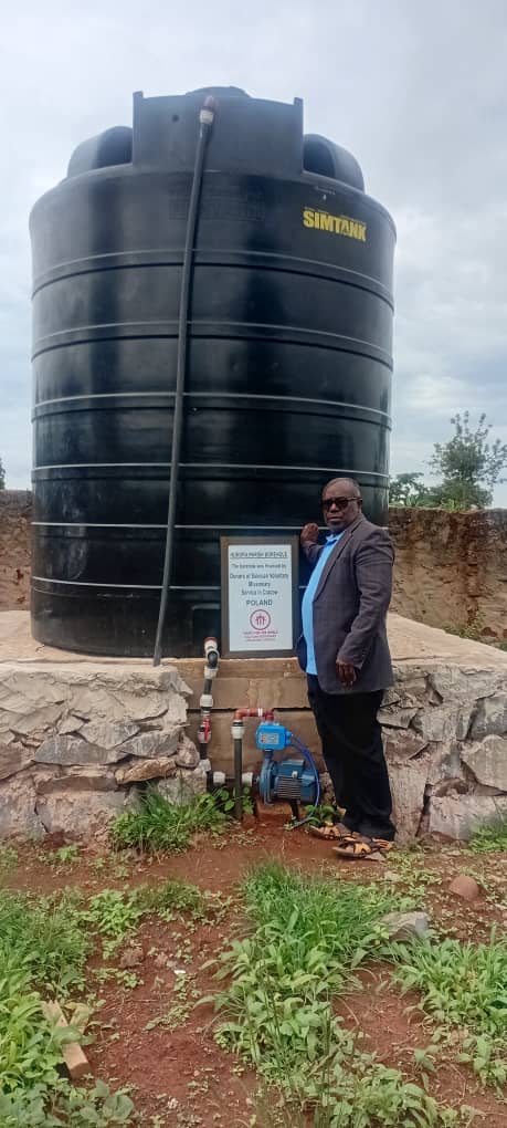 – podniesiono zbiornik i doprowadzono wodę rurami do szkoły, parafii oraz okolicznych wspólnot