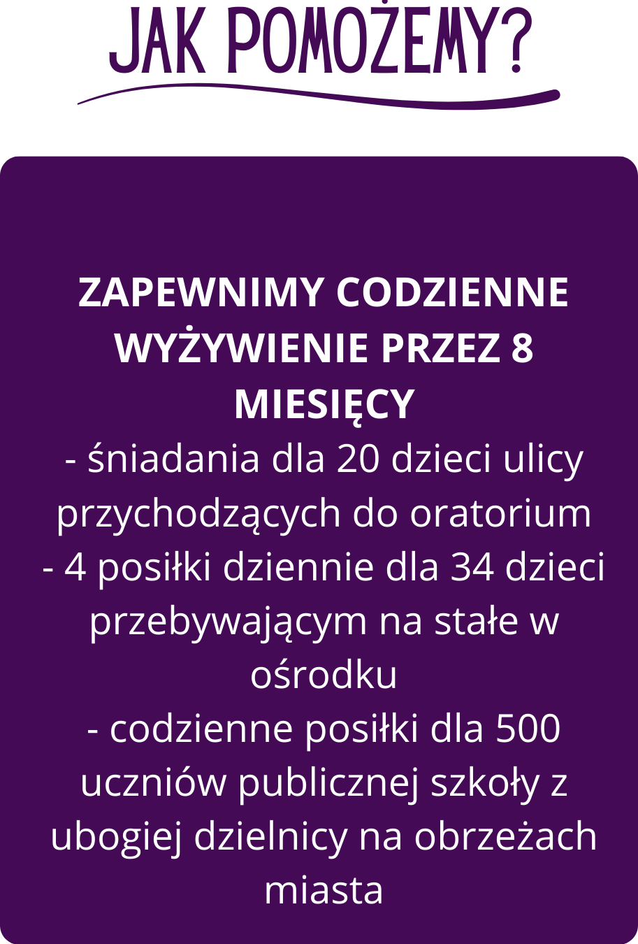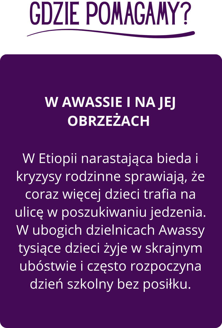 Fundacja istnieje od 2019 roku w Awassie. Prowadzi ją świecka misjonarka Magda wraz z mężem. Zapewnia kompleksową pomoc dzieciom ulicy: